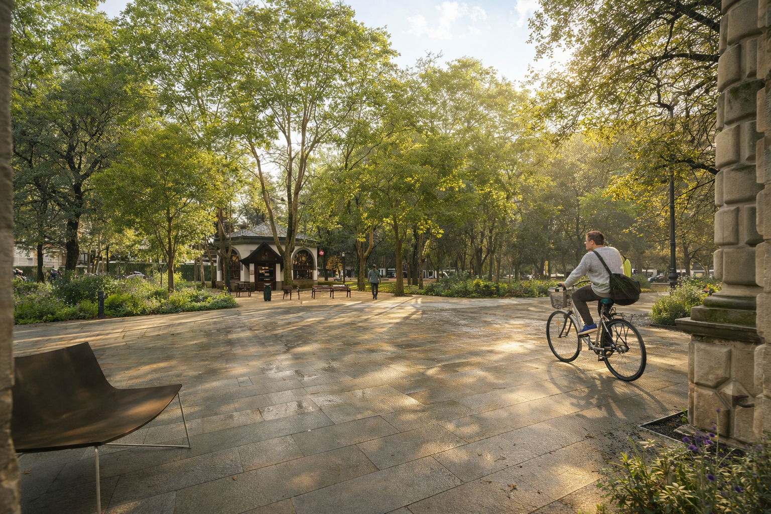 Esta plataforma homogénea tiene como virtud una flexibilidad total para su recorrido peatonal. De hecho, se generan gran cantidad de “caminos del deseo”, que conectan extremos del parque en recorridos peatonales repetidos.