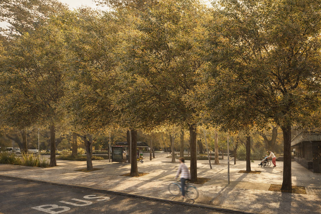 Es motivo de proyecto dotar a la explanada del bosquecillo de vegetación de hoja perenne, para espacios de sombra, que convierta la desolada extensión gris actual en una zona verde.